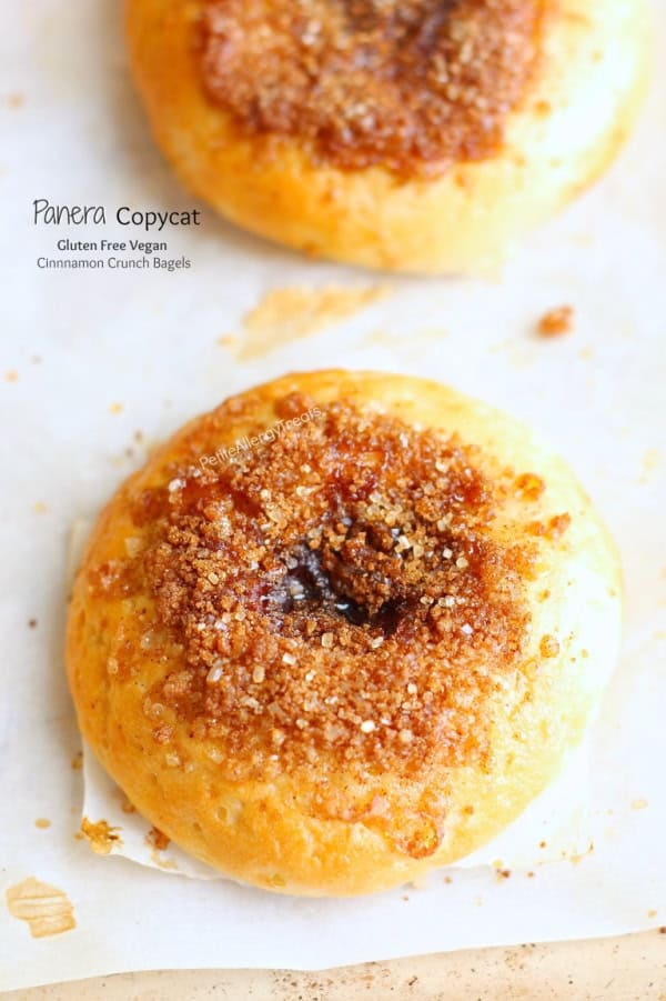 ~ Panera Copycat Cinnamon Crunch Bagels from Petite Allergy Treats ~ gluten free, egg free, vegetarian, with dairy-free, vegan option